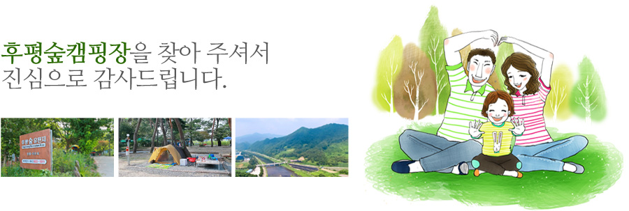 저희 후평숲유원지는 백두대간 자락 아래 천혜의 자연환경을 자랑하는 산과 강이 어우러지는 아름다운 숲이 많은 후평숲유원지는 그런 숲중 하나에 자리한 곳으로 개울과 어우러져 많은 사람들의 쉼터가 되고 있습니다.